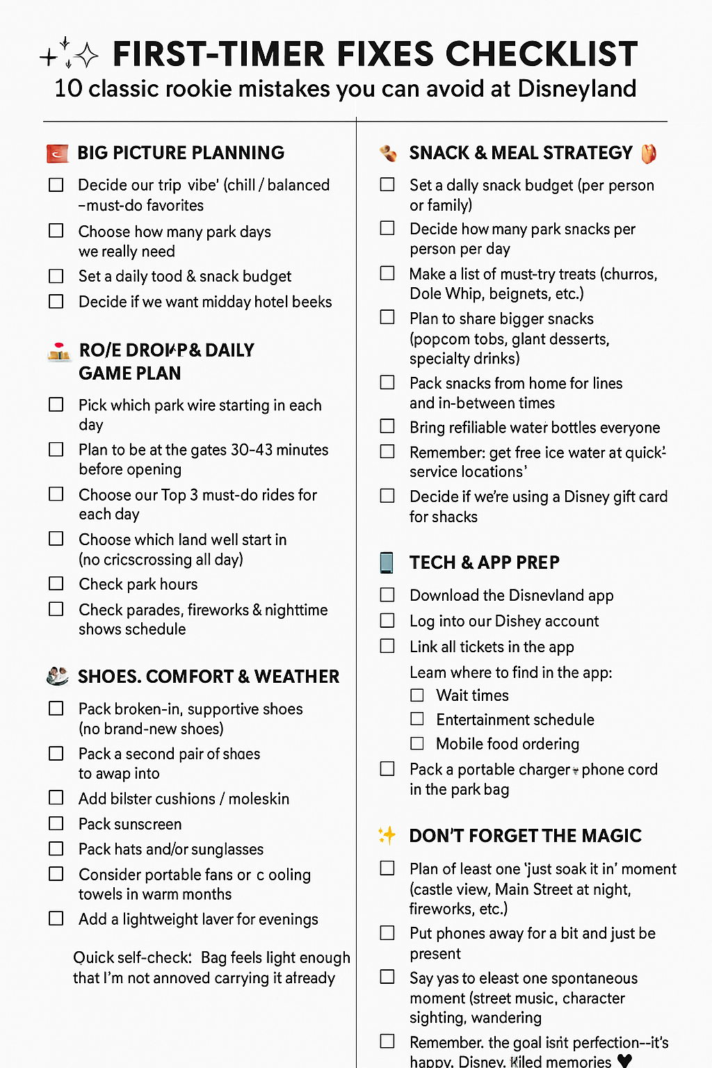 You can’t control everything at Disneyland (looking at you, ride breakdowns and sudden rain), but you can avoid a lot of the common first-timer regrets.